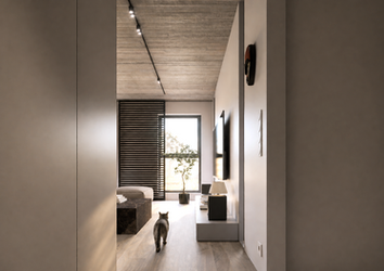 Projekt mieszkania w stylu minimalistycznym, dla ludzi którzy potrzebują mieć wokół siebie wyciszające wnętrze. Jest to projekt koncepcyjny, w którym zawarłem moją filozofię projektowania: naturalne materiały wykończeniowe, drewno, kamień, beton. Barwy we wnętrzu w palecie ciepłych odcieni ziemi.